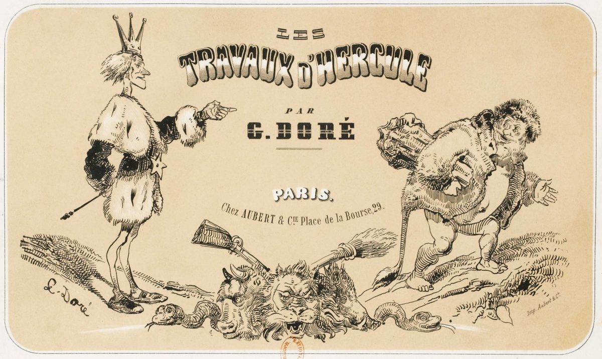 ‘Les Travaux d’Hercule’ (1847) es un álbum realizado por Gustave Doré a la edad de 15 años, donde se narra de forma paródica las aventuras del héroe griego clásico Hércules. A pesar de ser su primera obra es de una calidad espectacular. Fue publicado en 1847 por Charles Philipon, editor en ‘Aubert et Cie’ y director del Journal pour Rire. Esta obra entrará en la ‘colección Jabots’, junto con las obras de Töpffer.